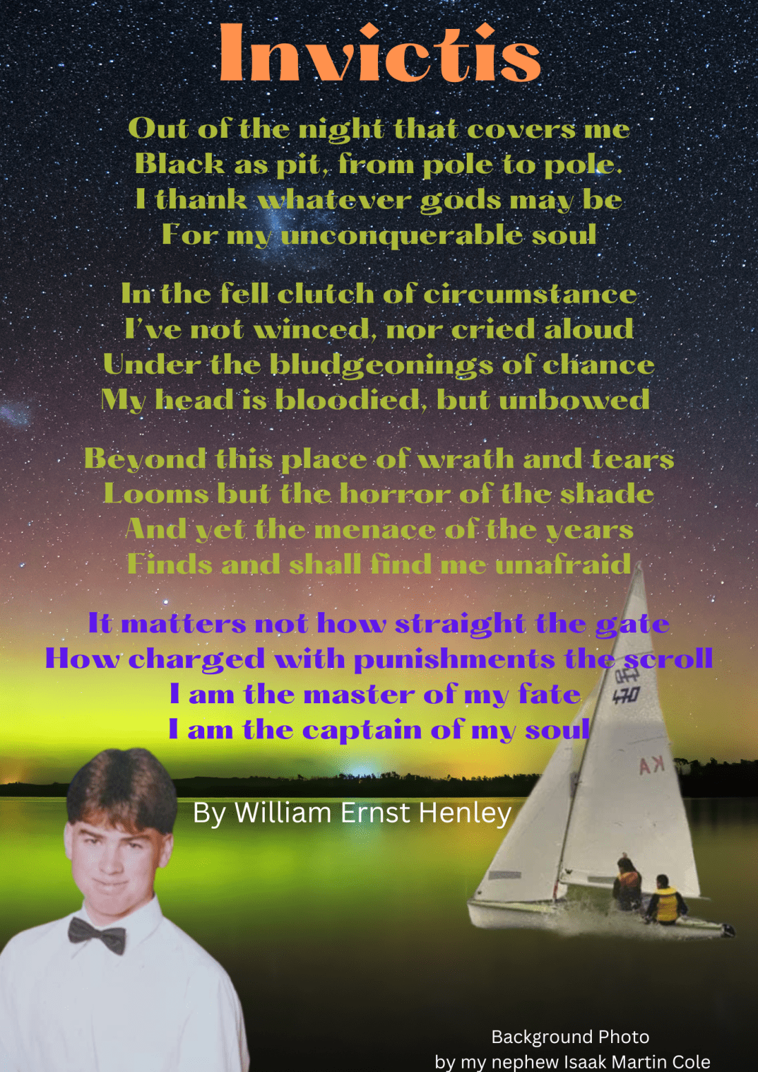 The poem Invictus by William Ernest Henley was profoundly impactful whilst I battled cancer.